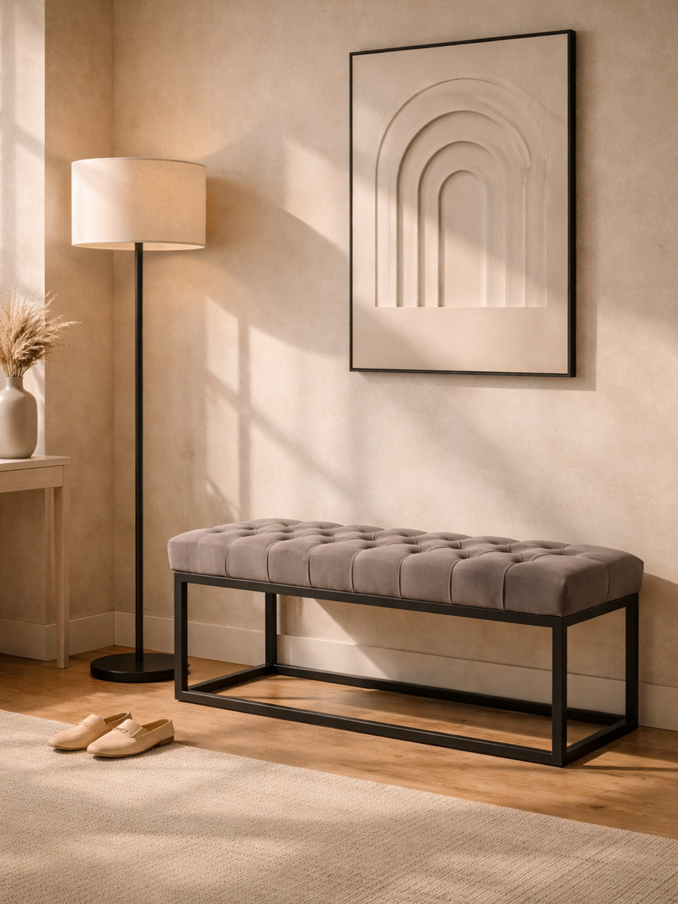 Un mélange de styles moderne et classique dans un seul meuble ? C'est possible avec nous ! Le modèle du banc LOFT est composé d'un cadre industriel moderne en profilés métalliques et d'un siège matelassé classique dans de nombreuses nuances au choix.