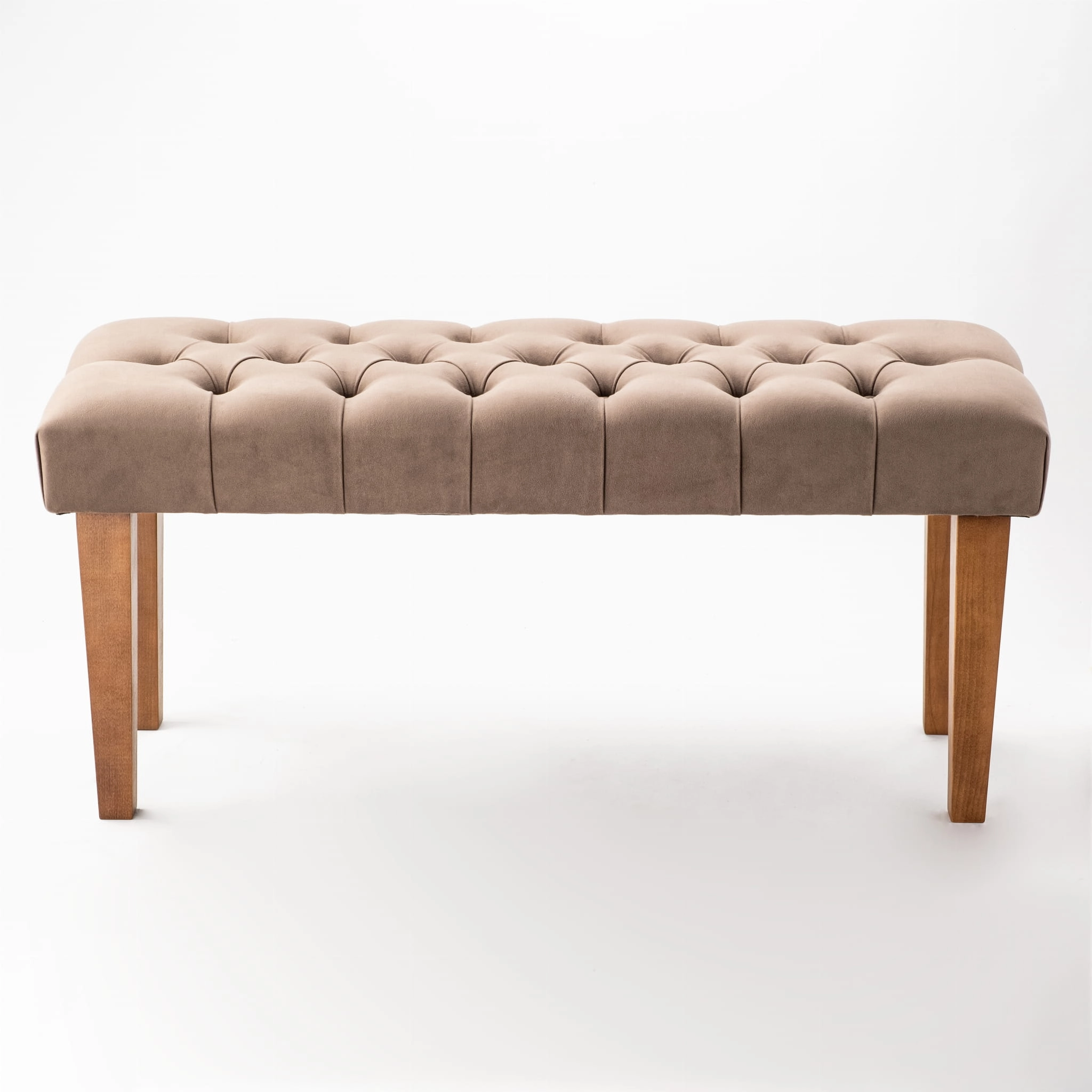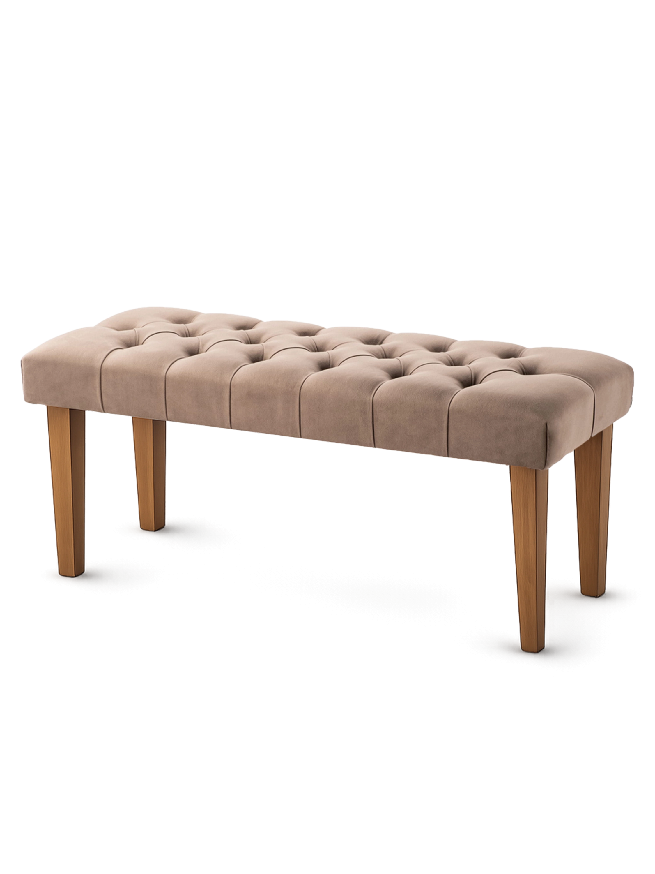 Un banc d'entrée matelassé en beige pierre sur des pieds droits solides. Le siège est entièrement fabriqué à la main, c'est pourquoi il est si beau et durera de nombreuses années. Le tissu utilisé pour la finition de banc est résistant à l'abrasion, aux taches et à la lumière de soleil. Les pieds sont en hêtre de qualité A soigneusement sélectionné, poncé et peint au pistolet avec un vernis résistant aux éclats.