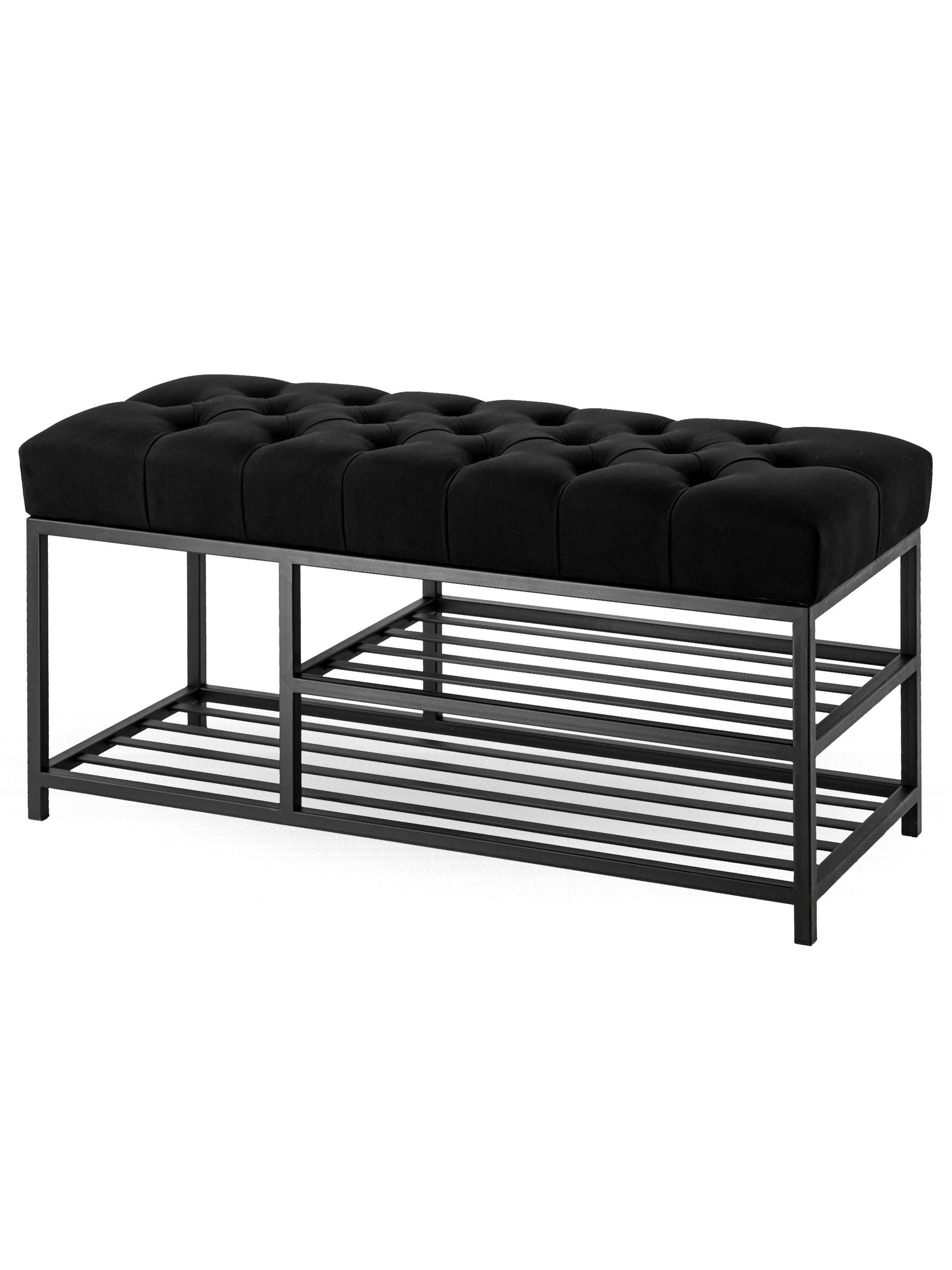 Ce banc industriel fait à la main avec des étagères à chaussures est le dernier produit de notre manufacture. Assise matelassée recouverte de matériaux de qualité supérieure de votre choix. Le cadre est en acier au carbone solide, résistant aux charges, revêtu d'une peinture en poudre avec un vernis résistant aux éclats.