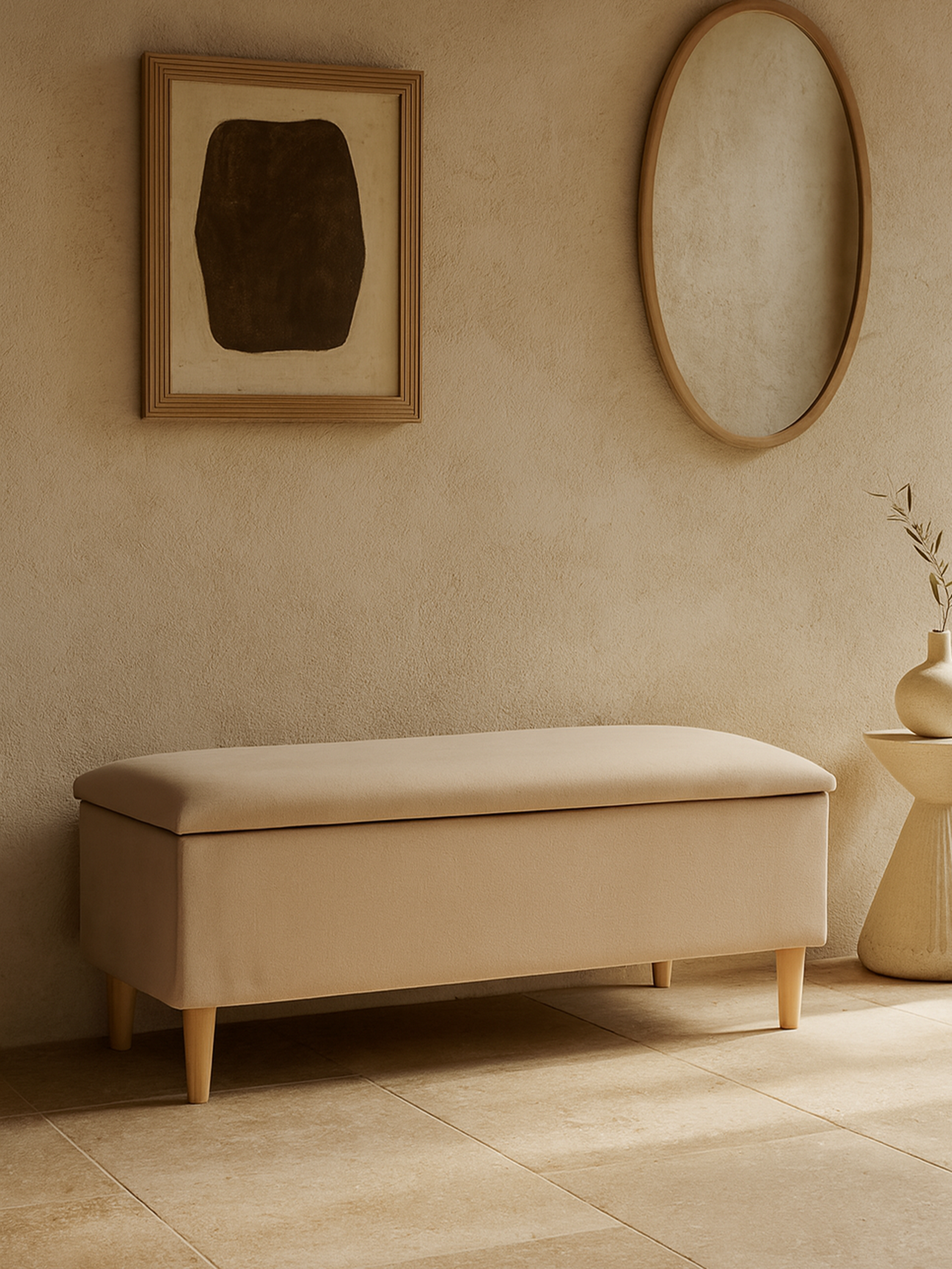 Le pouf avec rangement de couleur Latte n'est pas seulement un meuble pratique pour le rangement, mais aussi un élément design qui embellira et complètera votre intérieur. Sa qualité de fabrication et sa durabilité vous permettront d'en profiter pendant de nombreuses années, et son apparence originale enrichira chaque pièce.