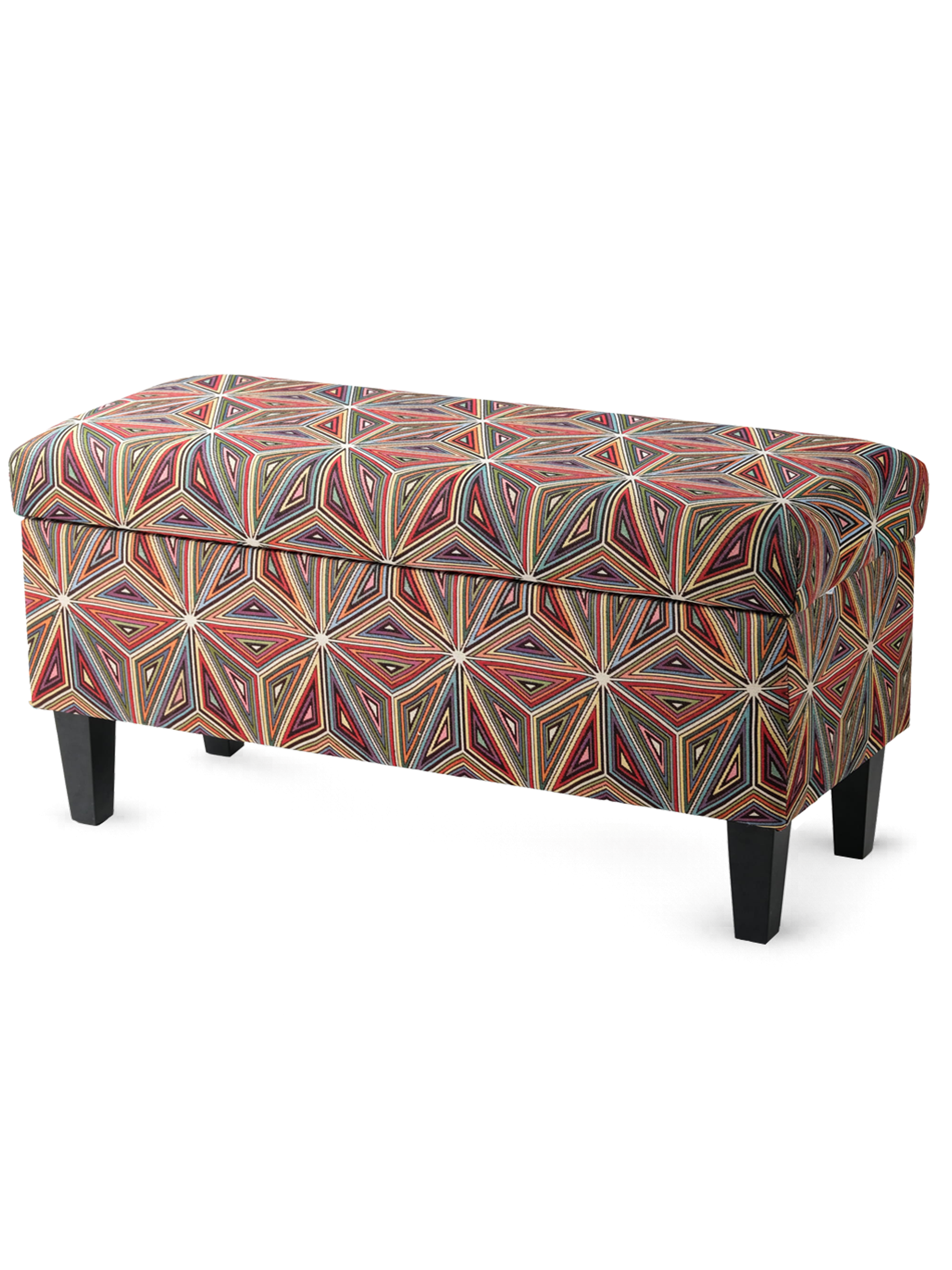 Pouf fait main avec récipient Tokyo Le tissu à motifs Fibero a gagné sa popularité grâce à ses motifs géométriques dans des couleurs expressives. Le tissu est résistant à l'abrasion, aux taches et à la lumière de soleil. Le pouf à ouverture sur pattes est tapissé et fabriqué entièrement à la main. Le siège est rempli de mousse de rembourrage et de ouate hypoallergénique. Ils s'ouvrent grâce à des charnières à ressort silencieuses. Les pieds sont fabriqués en hêtre de qualité A sélectionné.