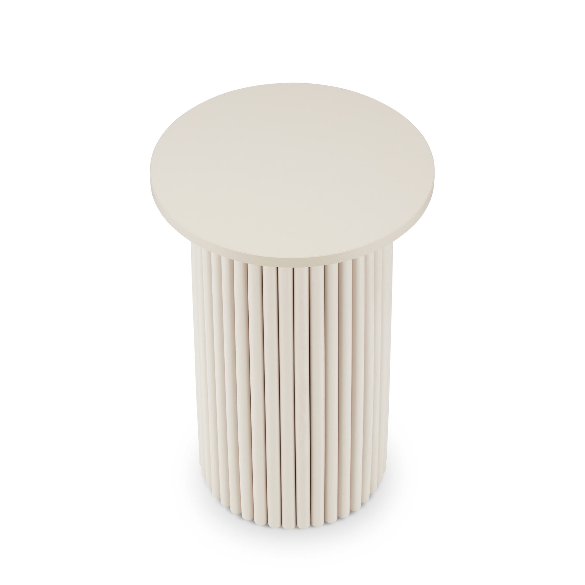 Les tables basses exceptionnelles avec un plateau rond et des pieds cannelés, disponibles en différentes tailles et couleurs, peuvent trouver leur place dans le salon, la chambre à coucher ou même la salle de bains et servir de tables d'appoint ou de porte-fleurs.