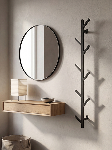 Les consoles pour l’entrée constituent un support élégant pour les clés, les décorations ou les sacs, tandis que les patères murales et verticales permettent de suspendre facilement manteaux et vestes. L’ensemble est complété par des panneaux muraux rembourrés, qui apportent chaleur et modernité à l’intérieur.