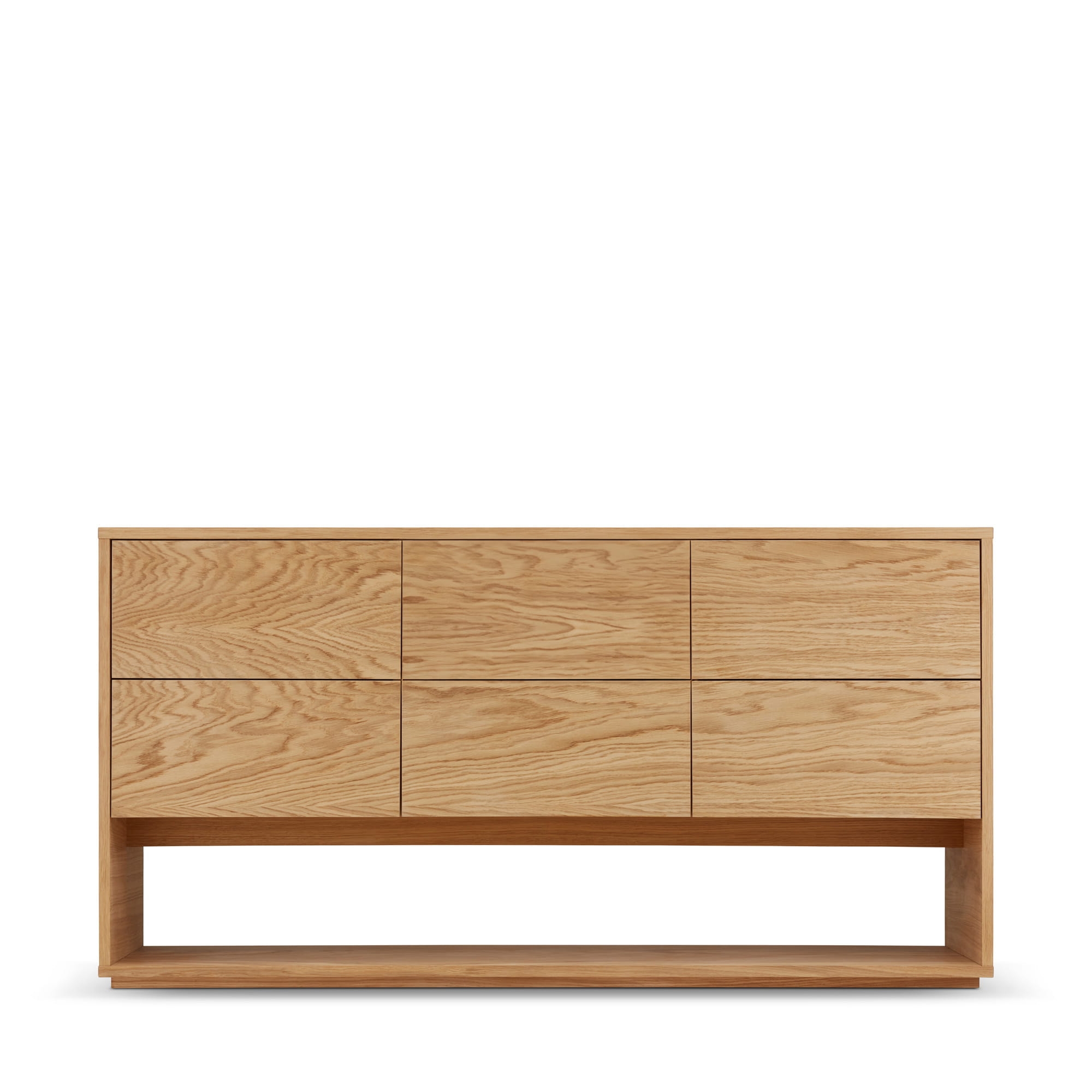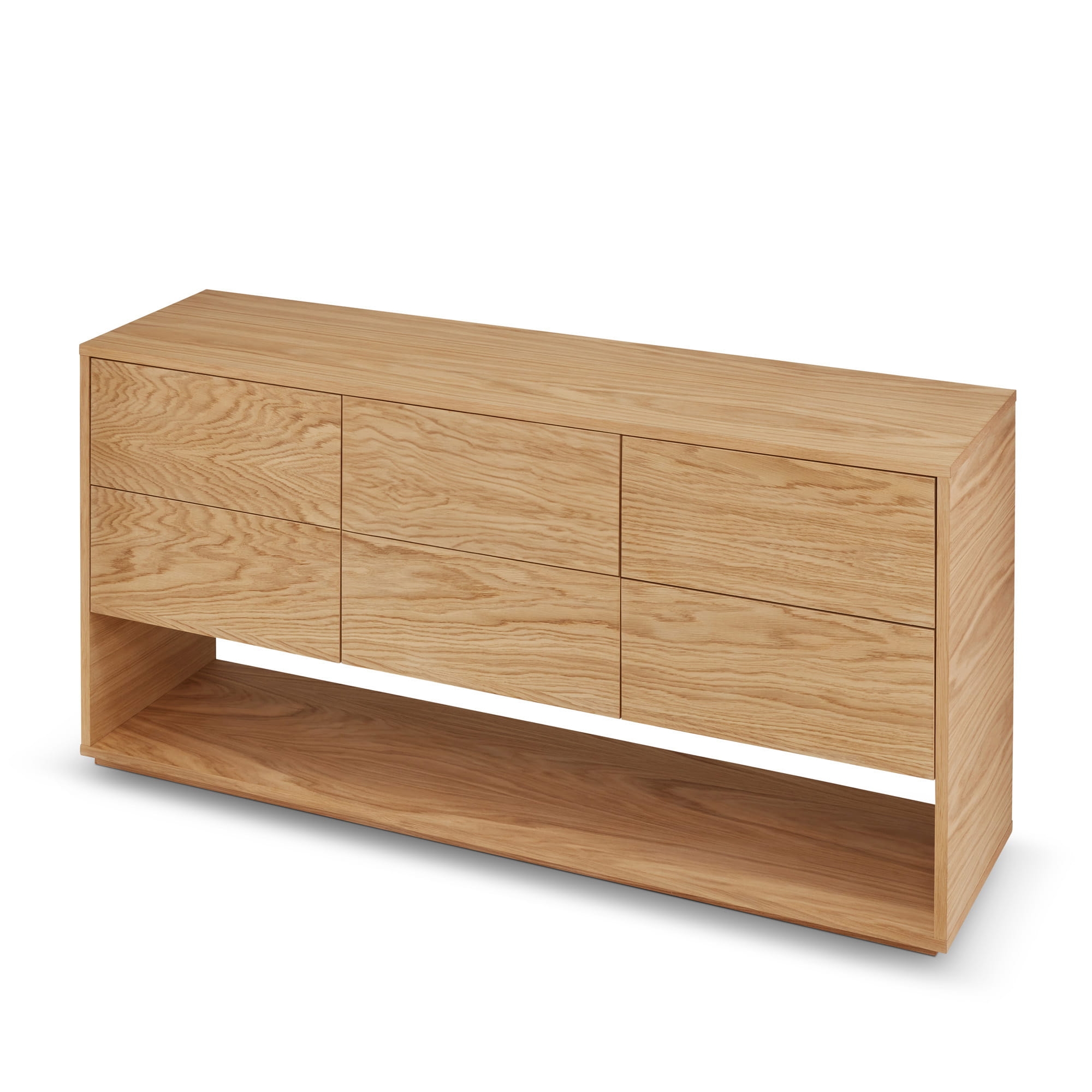 Wyposażona w sześć pojemnych szuflad osadzonych na prowadnicach Sevroll Premium, zapewnia cichy i płynny wysuw, ułatwiając codzienne użytkowanie. Dzięki szerokości od 150 cm, oferuje mnóstwo miejsca na przechowywanie, jednocześnie zachowując lekkość wizualną.